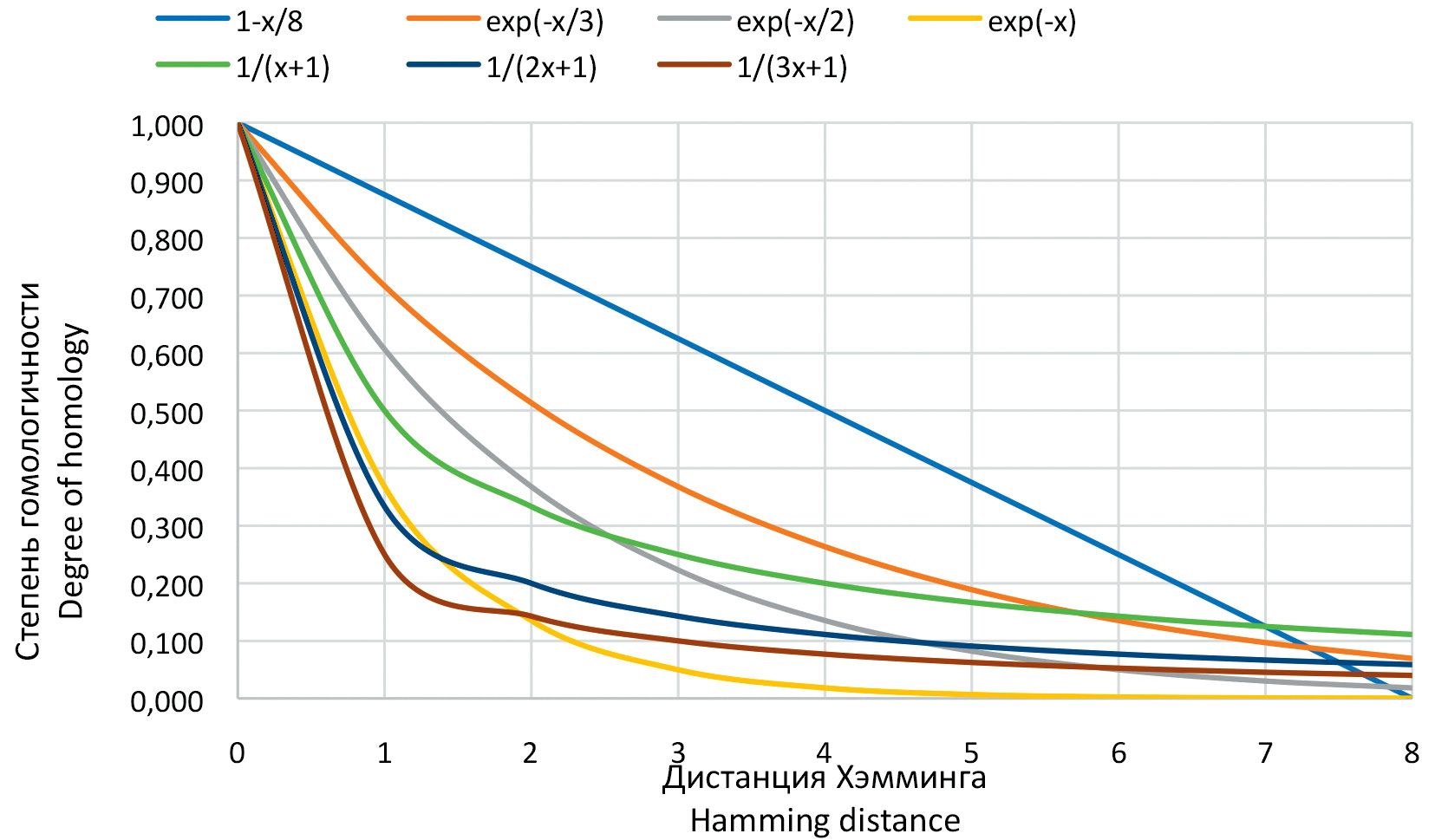 Also, to account for differences between strains by antigenic sites, we introduced the concept of homology degree and defined it for two randomly selected strains as a decreasing function of the Hamming distance, taking values from 1 to 0. The justification and selection of the functions used are described in detail in the section “Results”. The Stats package version 4.0.3 of the R programming language was used to train the regression model. The Pandas package version 1.4.2 of the Python programming language was used for data preprocessing. The stability of the predictive ability of the cross-immunity model was analyzed on retrospective data. As a measure of the adequacy of the model, we used the coefficient of determination R2 [29], and as a measure of the accuracy of the forecast – the index of reproducibility of titles for one (± 1) and (or) two (±2) dilutions. We relied on numerous studies in which, when comparing the results of HAI assay for each sample within one laboratory or between several, the titers were considered equivalent if they differed by no more than one dilution (i.e. by 2 times) [30–32].