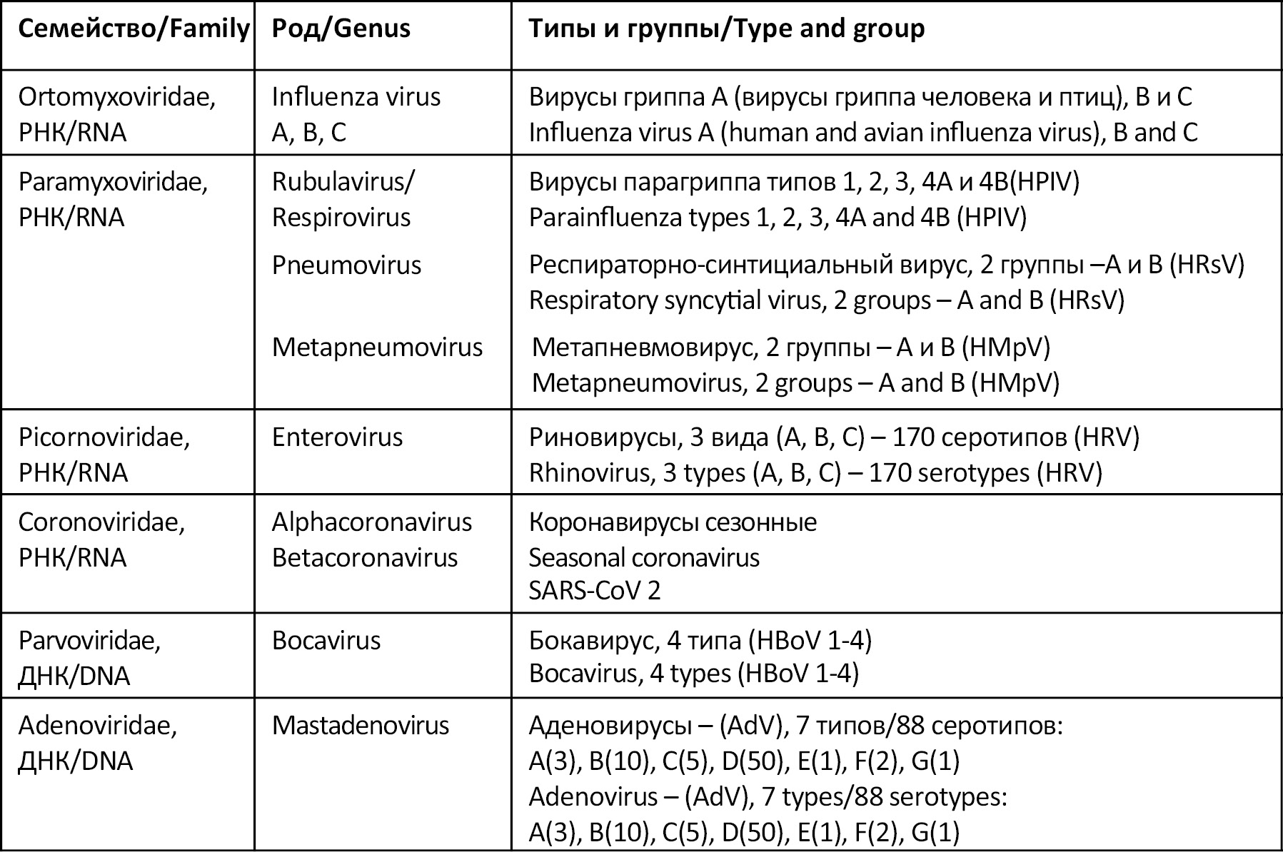 Рис. 19. Характеристика возбудителей сезонных острых респираторных вирусных инфекций (ОРВИ).
