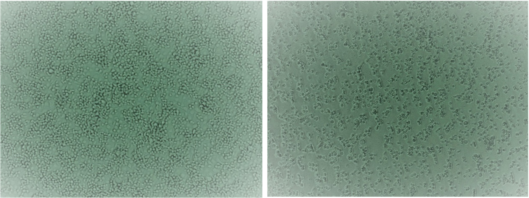 Рис. 1. Световая микроскопия (×200) культуры клеток С6/36, инфицированной штаммом DEZV Yakutsk 2023, через 120 ч после инфицирования.