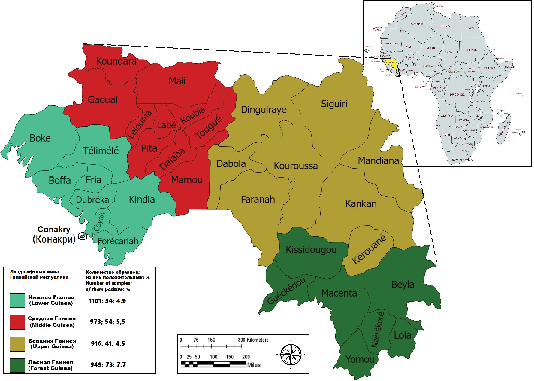 The described scientific work was approved by the decision of the Ethical Committee of Guinea (Minutes No. 129/CNERS/16 of 31.08.2015). The material was collected after adult patients signed informed consent, and in minors – after authorization of parents or legal representatives. Practically healthy individuals who participated in the study additionally confirmed that they were not infected with Ebola virus in 2014–2016, but did not exclude contact with wild and domestic animals.