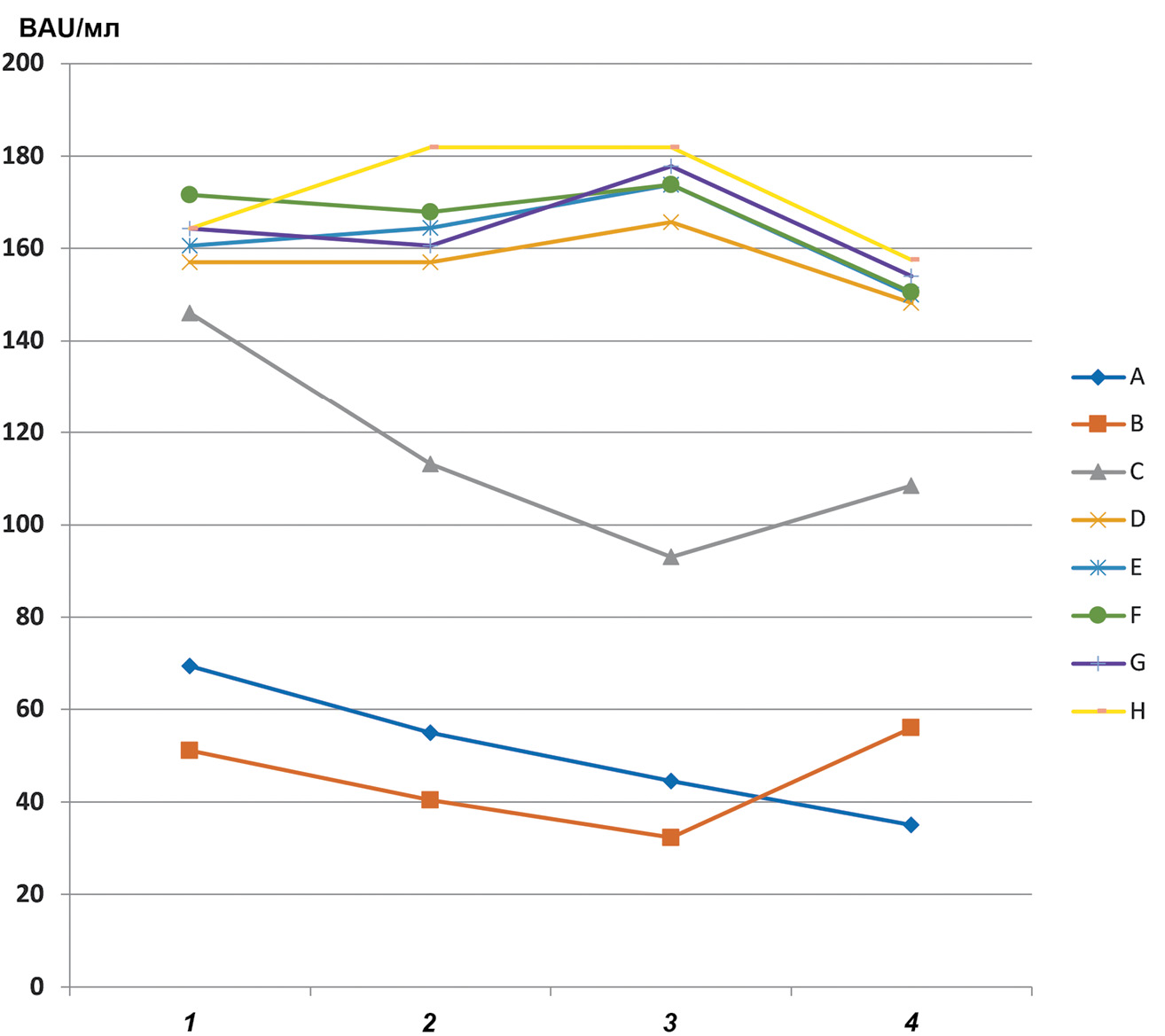 Рис. 3. Изменение количества антител в течение 4 мес.