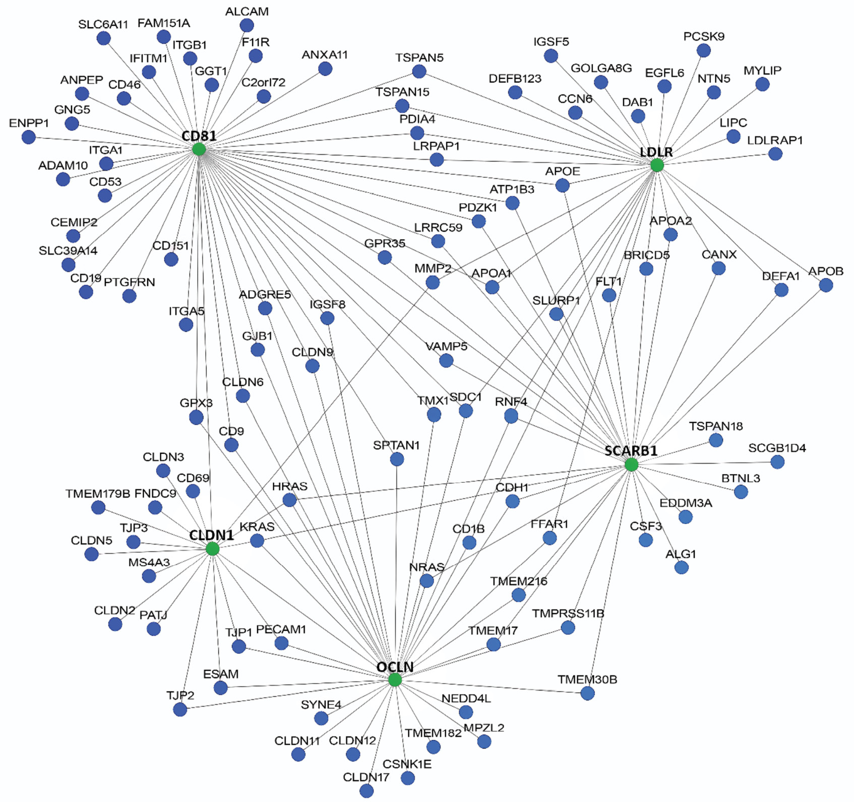 Materials and methods. A number of web applications with complementary algorithms and databases were used to analyze genetic and protein-protein networks. The following genes were used as basic genes: CD81, CLDN1, LDLR, OCLN, SCARB1, the products of which are involved in interaction with viral glycoproteins E1 and E2 at the stage of HCV attachment and penetration into the cell. Data analysis was performed, including a two-stage scoring ranking of the identified candidate genes based on their interaction with basic genes and their presence in the results of network analysis of different web resources.