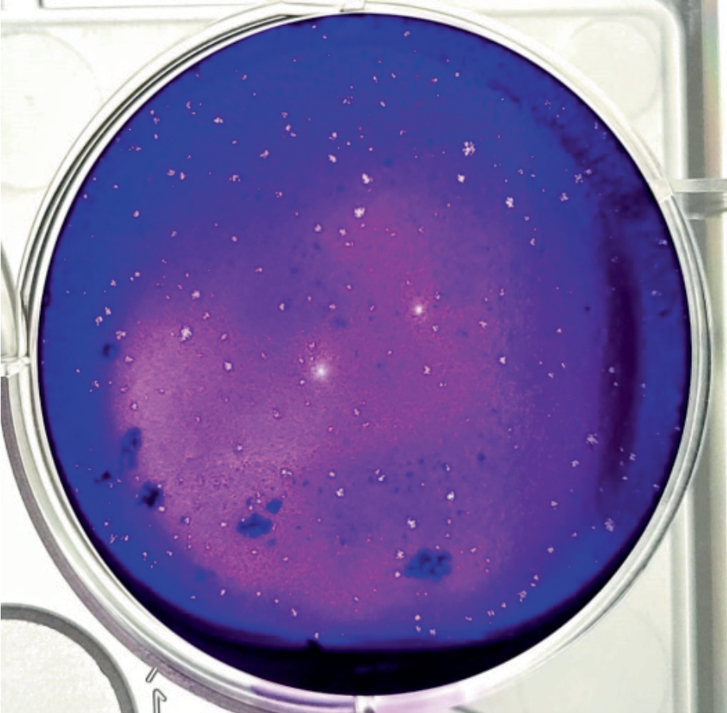 Рис. 3. Бляшки в лунке планшета с культурой клеток 4647.