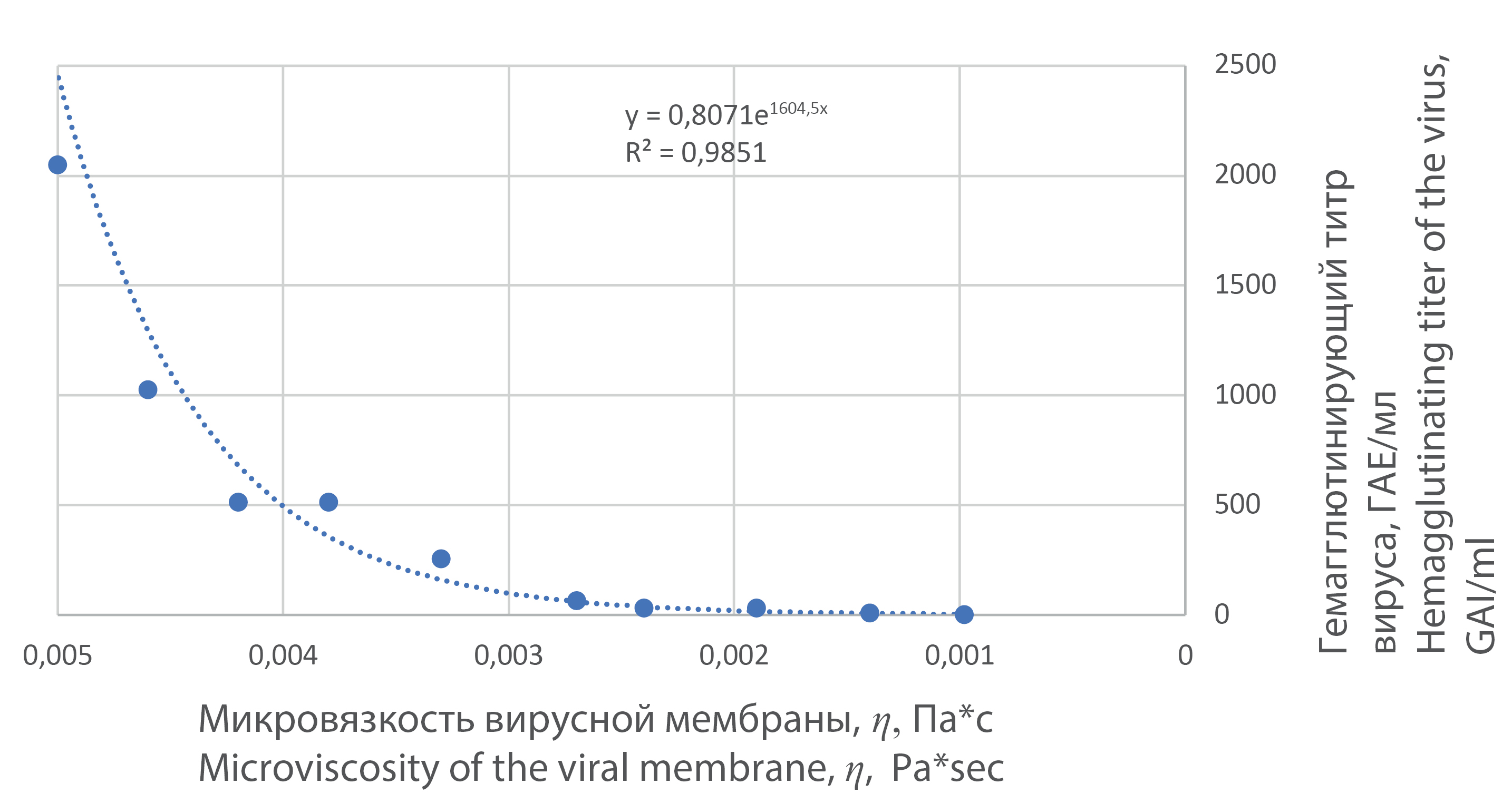 Таким образом, предложенная в работе методика позволяет проводить количественное определение инфекционной и гемагглютинирующей активности вируса гриппа в зависимости от изменений микровязкости мембран вирусов после взаимодействия фосфолипидных модификаторов. Данный метод может найти применение в вирусологических исследованиях и клинической лабораторной диагностике при определении инфекционной и гемагглютинирующей активности вирусов гриппа.