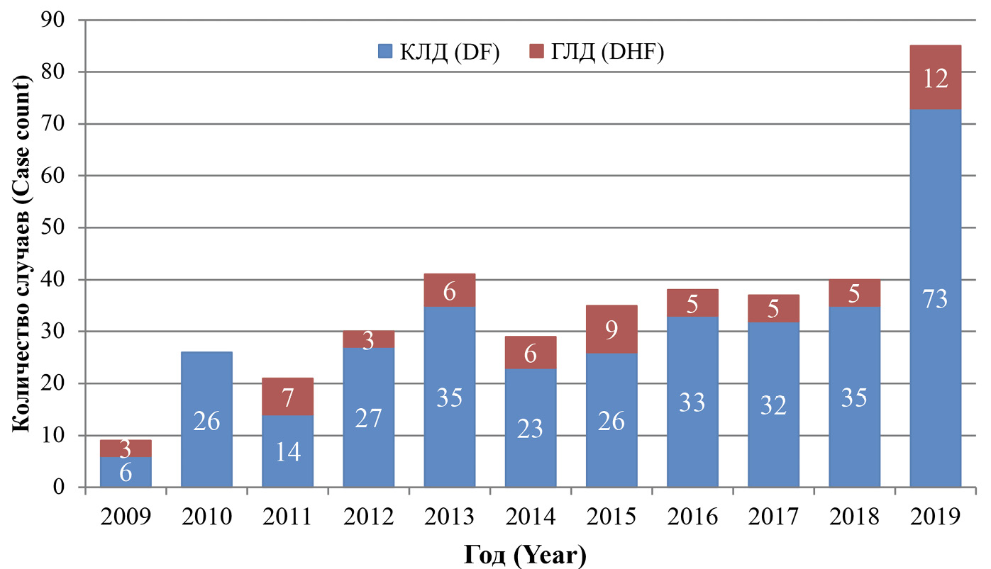 The aim of our study was to analyze clinical and epidemiological characteristics of DF and DHF in patients hospitalized to Infectious Disease Clinical Hospital No. 1 (IDCH No. 1) in Moscow in 2009–2019.