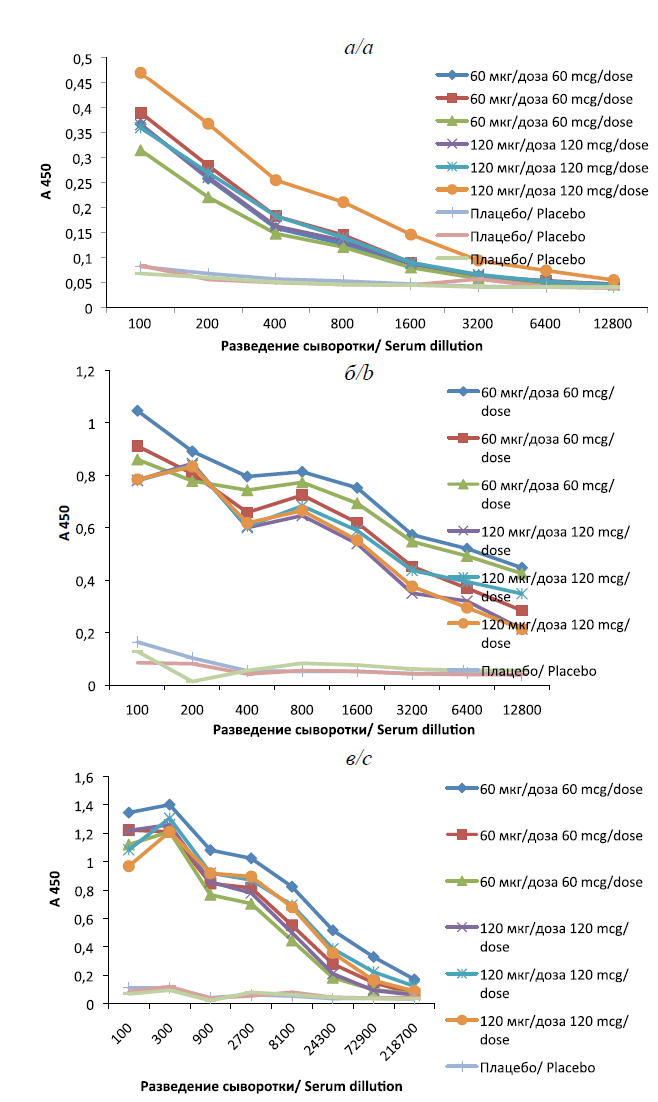 Ранее нами было показано, что появление IgG-антител к РВА в сыворотке крови является маркером формирования системного иммунитета против РВИ, обеспечивающего наряду с местным выживание животных после экспериментального заражения [16].